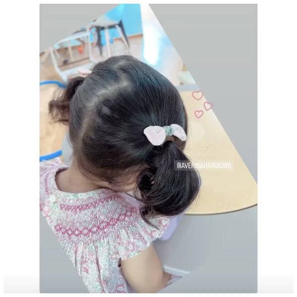 ゴージャスなキラキラがあしらわれたフランス製のチュール生地USAファブリック生地を使用した、ころんとしたリボン型かわいらしいヘアゴムセット