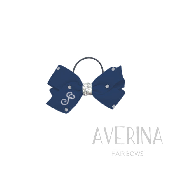 LOLA クラシック Mサイズ〈ヘアタイ〉ネイビー|イニシャルとクリスタルの上品ヘアボウ